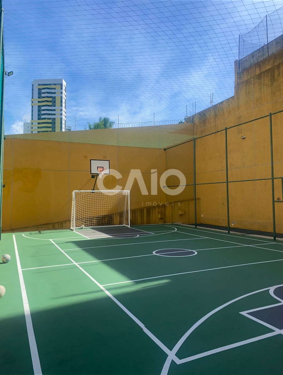 Área de lazer com piscina, churrasqueira, salão de festas, academia, playground e quadra de esportes.